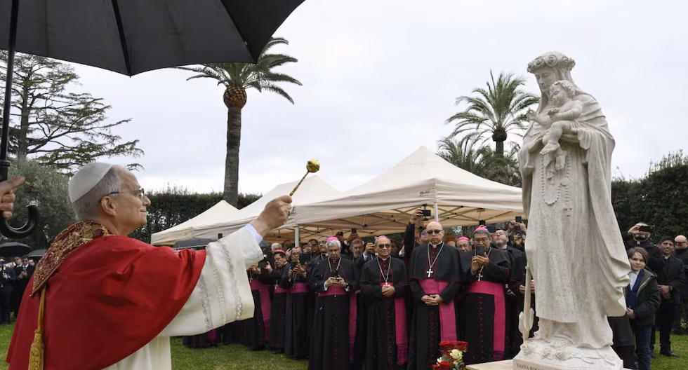 El papa León XIV inauguró este sábado un mosaico dedicado a la Virgen María y una imagen de Santa Rosa…