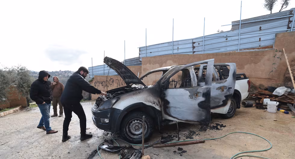 Colonos israelíes calcinaron la madrugada de este domingo el vehículo todoterreno de un palestino en la localidad de Huwara, al…