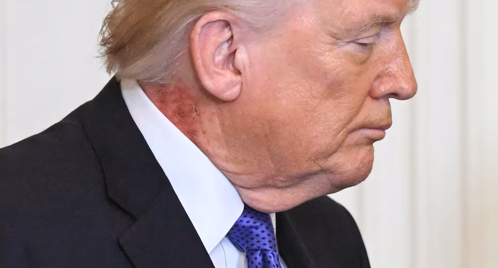 El presidente de Estados Unidos, Donald Trump, fue visto este lunes con una mancha roja en el cuello, que según…